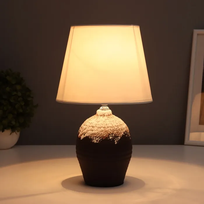 Настольная лампа с изысканным дизайном станет стильным акцентом в вашем интерьере. Темно-коричневое керамическое основание и светлый текстильный абажур создают гармоничное сочетание, которое добавляет уют и элегантность в любое пространство. Эта лампа идеально подойдет для рабочего стола, прикроватной тумбочки или уютного уголка для чтения.