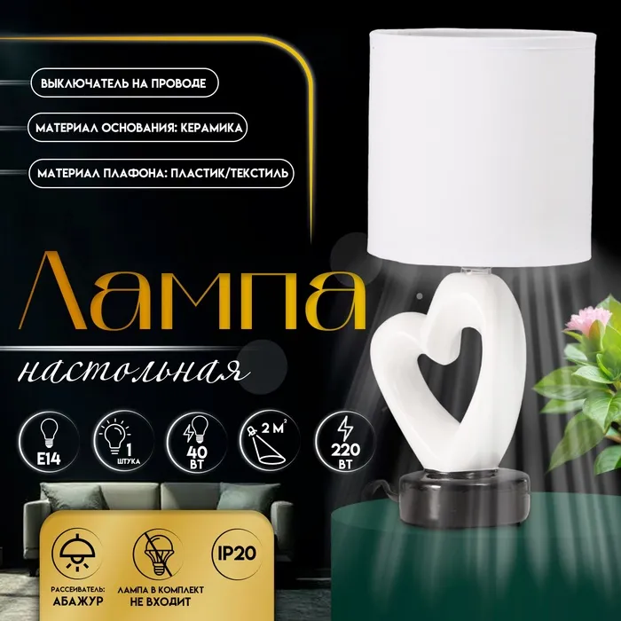 Лампа настольная «Бутон» 1×40 Вт Е14 белый 20×20×34 см — Характеристики