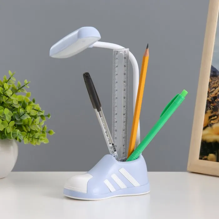 Эта компактная настольная лампа станет отличным помощником для учебы и работы. Ее голубое пластиковое основание и встроенные светодиоды обеспечивают яркое освещение, а стильный дизайн идеально впишется в школьный интерьер.
