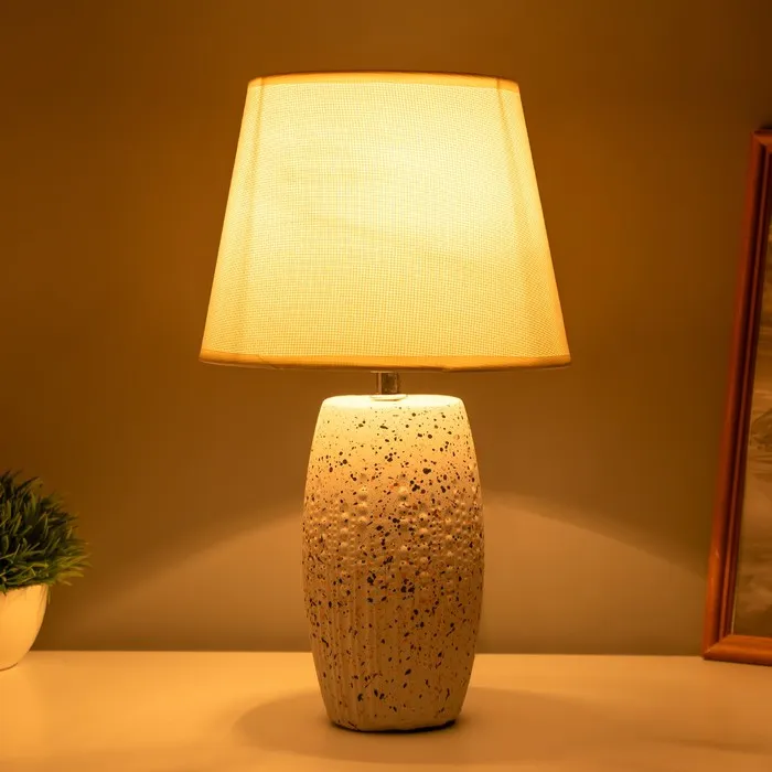 Создайте уют и стиль в вашем доме! Элегантная настольная лампа с текстильным абажуром - это идеальный аксессуар для любого интерьера. Разноцветное керамическое основание и светлый конусный абажур придадут вашему пространству свежесть и оригинальность.