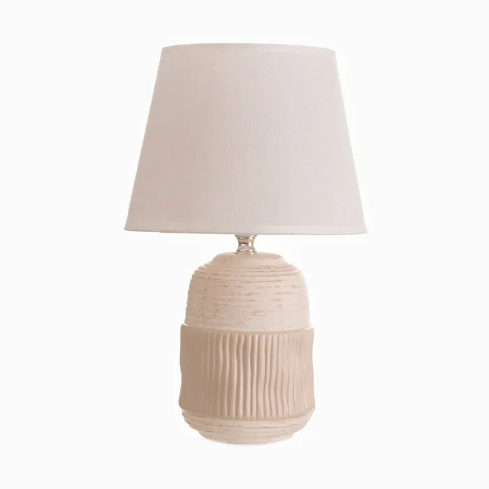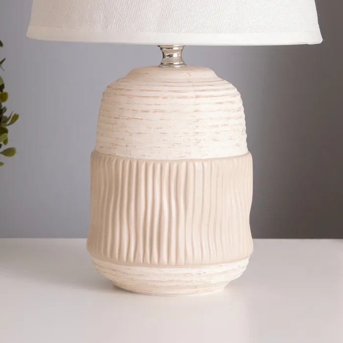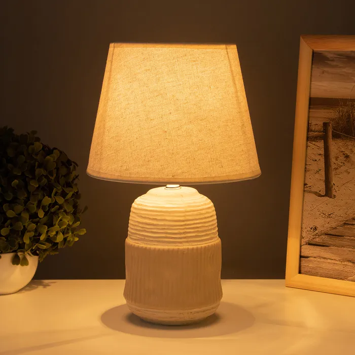 Создайте уютный уголок в вашем доме! Элегантная настольная лампа с текстильным абажуром - это стильное решение для любого интерьера. Белое и кремовое керамическое основание в сочетании с конусным рассеивателем придаст вашему пространству изысканность и тепло.