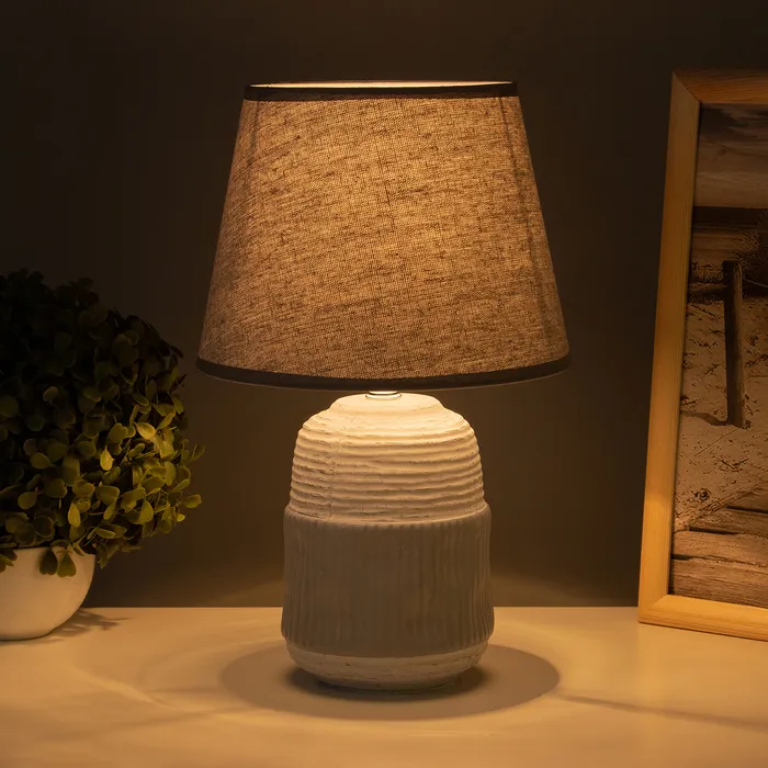 - Конусный текстильный абажур обеспечивает мягкое и комфортное освещение, создавая атмосферу расслабления.