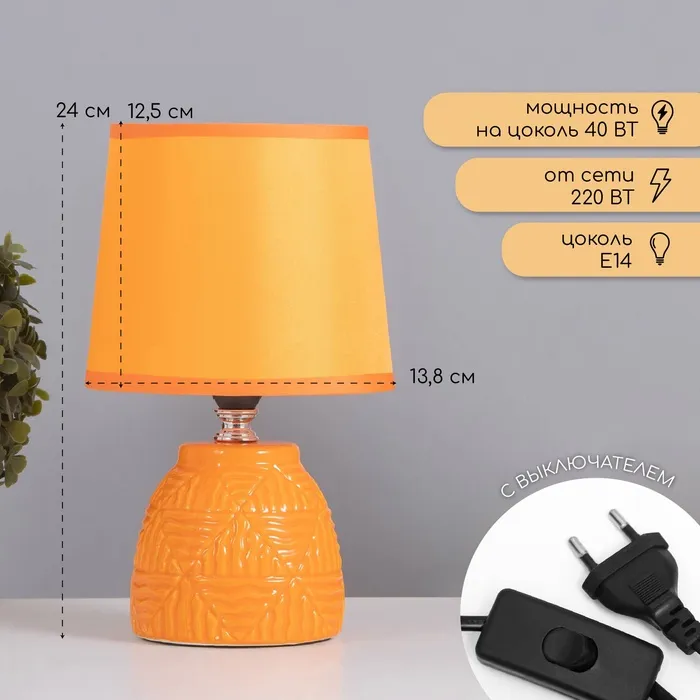 Лампа настольная «Давид» 1×40 Вт Е14 оранжевый 14.5×14.5×24 см — Характеристики