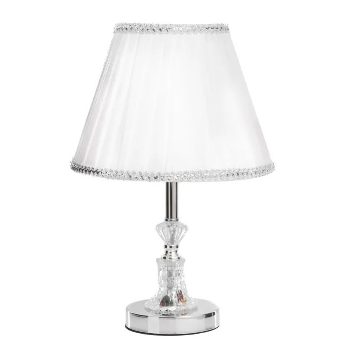 Эта настольная лампа станет изящным дополнением любого интерьера, привнося свет и стиль. С хромированным основанием и белым текстильным абажуром, она отлично вписывается в классические и современные пространства, создавая комфортную атмосферу для работы и отдыха.