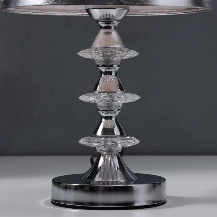 Эта лампа не только освещает пространство, но и служит стильным элементом декора. Хромированное основание и серый оттенок плафона гармонично сочетаются, добавляя изысканности в ваш дом. Она станет отличным выбором для создания романтической обстановки или уютного уголка для чтения.