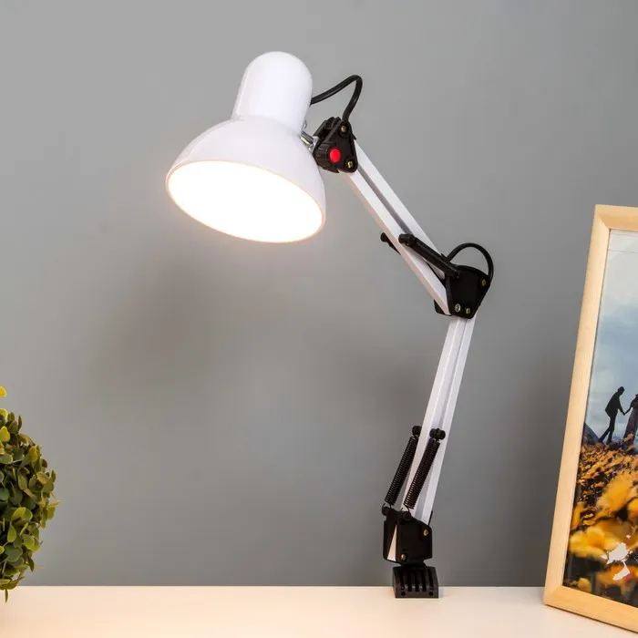Лампа настольная Е27, h=55 см, шарнирная, на зажиме (220 В) белая RISALUX — Характеристики