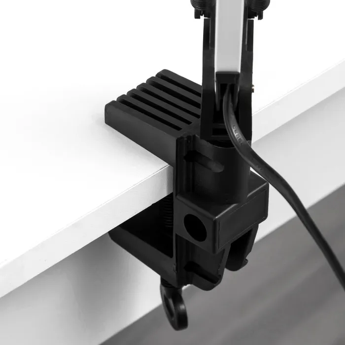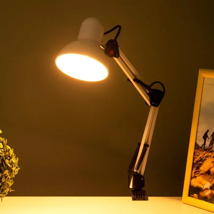 - Крепление на струбцине позволяет легко зафиксировать лампу на столе или полке.