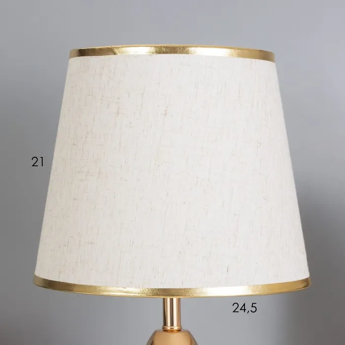 Эта настольная лампа с золотым основанием и стильным текстильным абажуром станет отличным дополнением вашего интерьера. Высота 43 см и размеры 25×25 см идеально подходят для рабочего стола, прикроватной тумбочки или любого другого уголка вашего дома. Лампа создаёт мягкое и приятное освещение, добавляя уют и тепло в атмосферу.