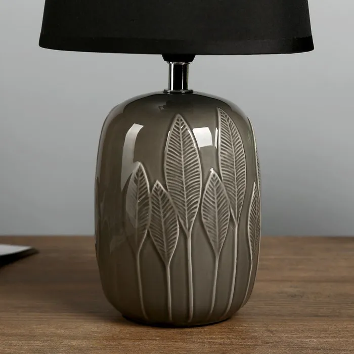 Декоративная настольная лампа «Ясень» с текстильным абажуром украсит интерьер в стиле модерн. Керамическое основание украшено рельефным травяным орнаментом.