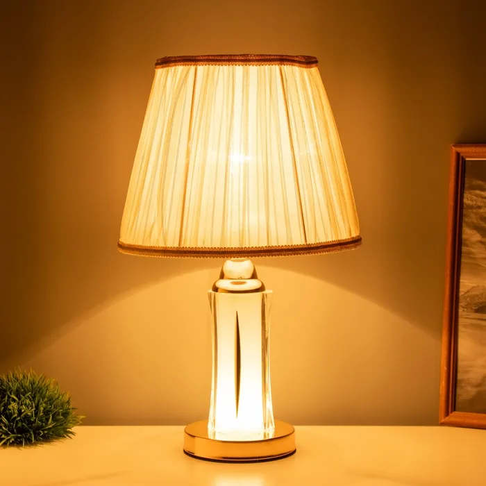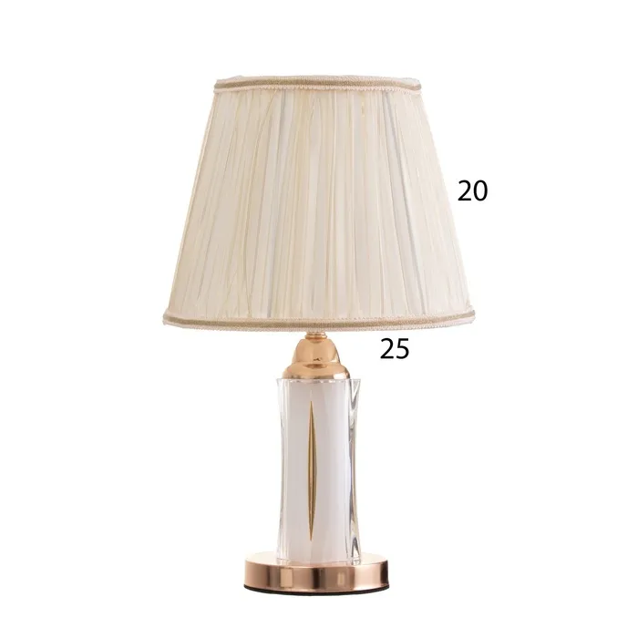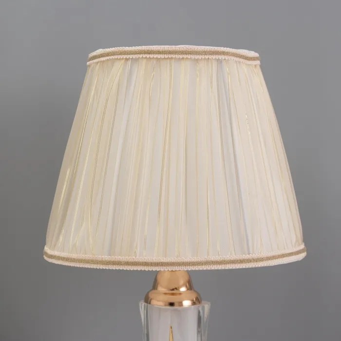 Эта настольная лампа станет изысканным дополнением вашего интерьера, добавляя нотки роскоши и уюта. С высотой 43 см и размерами 25×25 см, она прекрасно впишется в рабочее пространство или рядом с вашей кроватью. Золотое основание и бежевый текстильный абажур создают стильный и современный облик.