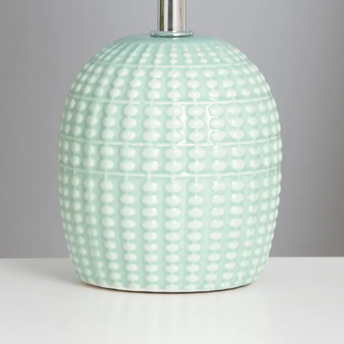 Эта настольная лампа станет ярким акцентом в вашем интерьере, добавляя нотку свежести и уюта. С зелёным керамическим основанием и цилиндрическим текстильным абажуром, она прекрасно впишется в любое пространство, от спальни до рабочего кабинета.
