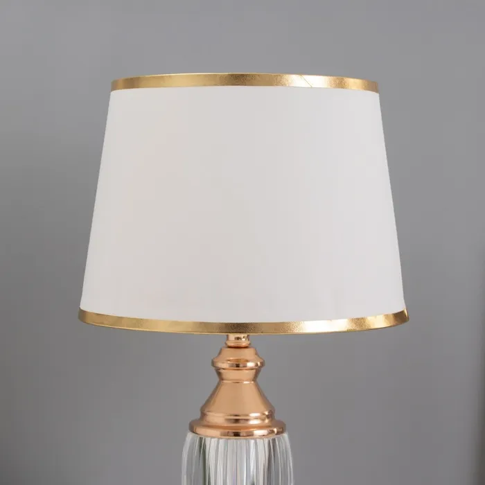 Эта настольная лампа станет стильным дополнением вашего интерьера, добавляя уют и элегантность. С высотой 41 см и размерами 25×25 см, она отлично подходит для освещения рабочих мест или создания атмосферного света в гостиной. Золотое основание в сочетании с белым текстильным абажуром придаёт изделию современный и изысканный вид.