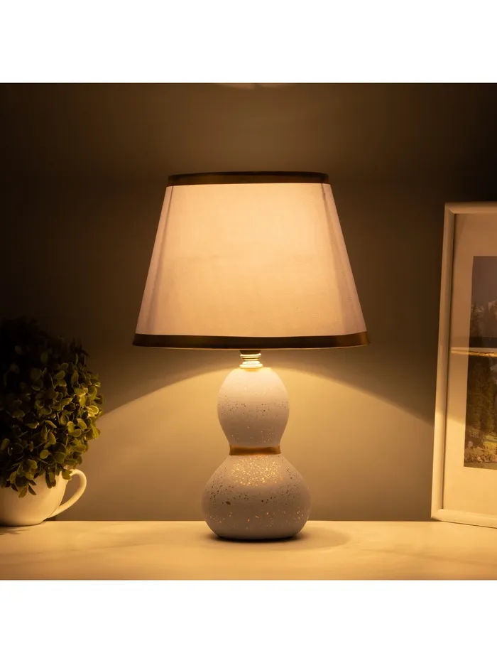 - Текстильный абажур мягко рассеивает свет, создавая комфортное освещение.