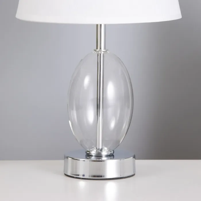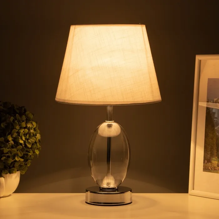 Эта настольная лампа станет стильным акцентом в вашем интерьере, добавляя нотку изысканности и современности. С хромированным основанием и текстильным абажуром в светлых тонах, она идеально подходит для создания уютной атмосферы в спальне, гостиной или офисе.