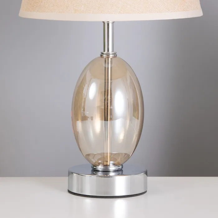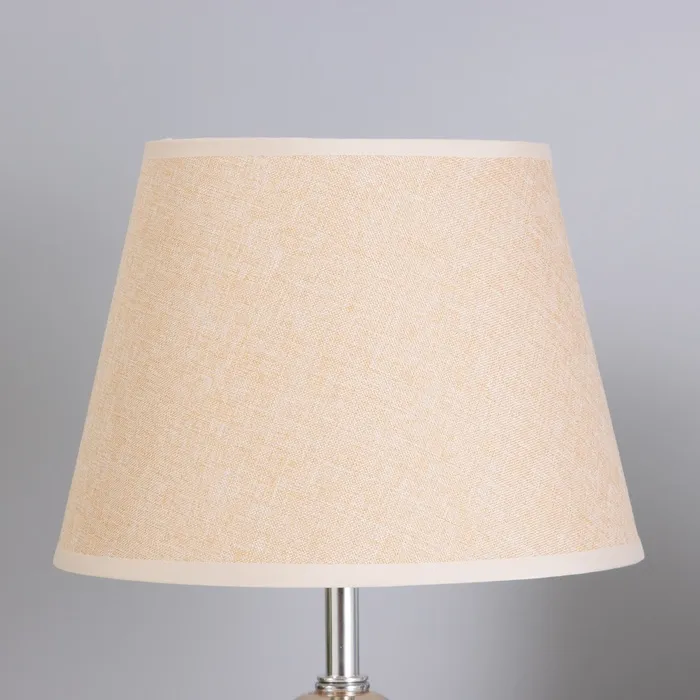 Эта настольная лампа станет прекрасным дополнением вашего интерьера, внося легкость и стиль. С хромированным основанием и текстильным абажуром в бежевых тонах, она создаст уютную атмосферу в спальне, гостиной или офисе.