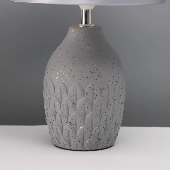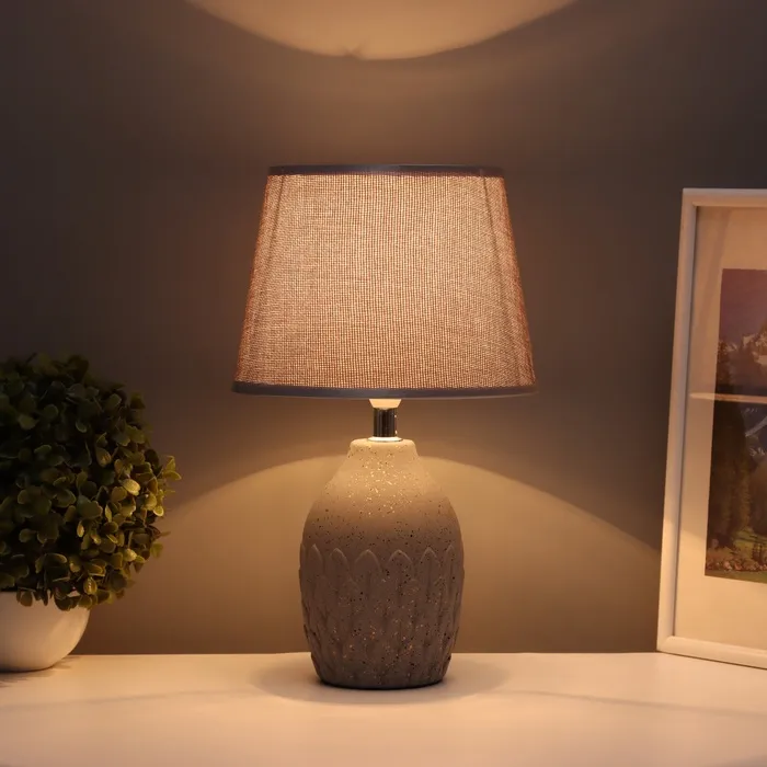 Эта настольная лампа станет идеальным решением для создания уютной атмосферы в вашем доме. С её стильным серым керамическим основанием и конусным текстильным абажуром, она добавит элегантности в любое пространство, будь то рабочий стол или прикроватная тумбочка.