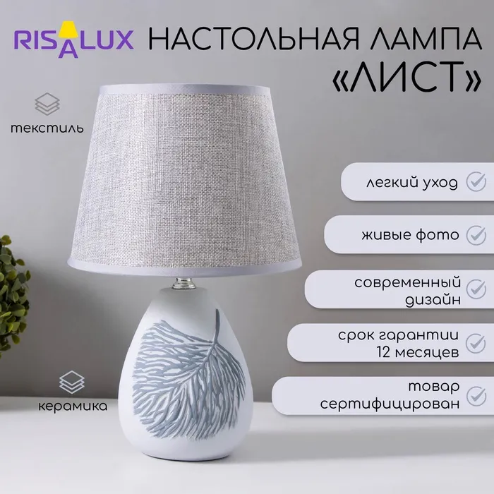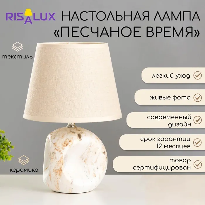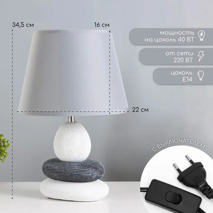 Лампа настольная керамика Е14 40 Вт 220 В "Сад камней: чистота" 34.5×22.5×22.5 см RISALUX — Характеристики