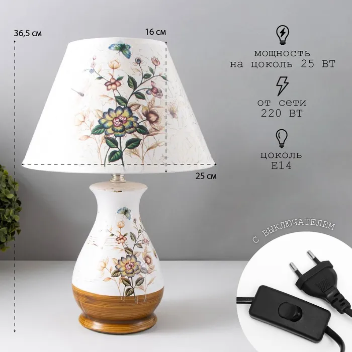Лампа настольная керамика «Сказка» Е14 25W 220 В 36.5×25×25 см RISALUX — Характеристики