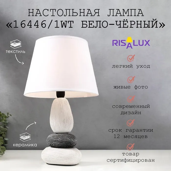 Лампа настольная керамика «Вильнюс» серая с серебром Е14 40 Вт RISALUX — Характеристики
