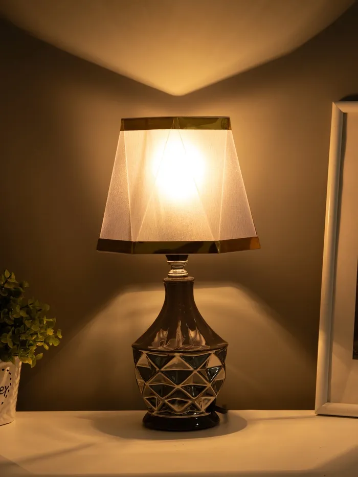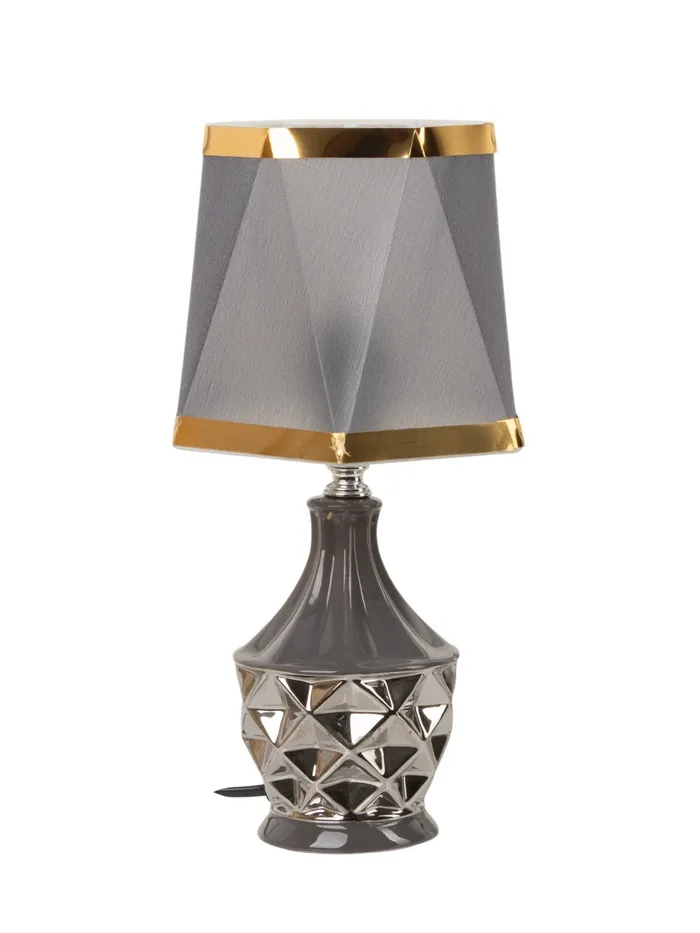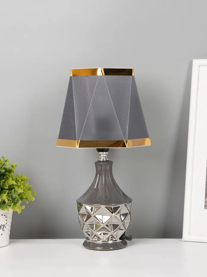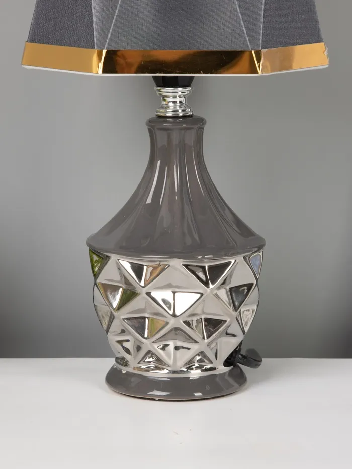 - Дизайн с акцентом на фактуру: Керамическое основание — тяжёлое, устойчивое, с матовым покрытием. Призматическая форма абажура добавляет графичности, не перегружая композицию. Серый цвет и серебряные элементы работают на контрасте с тёплыми и холодными интерьерами.