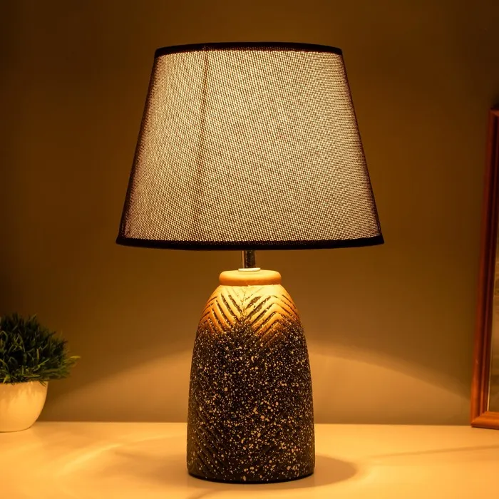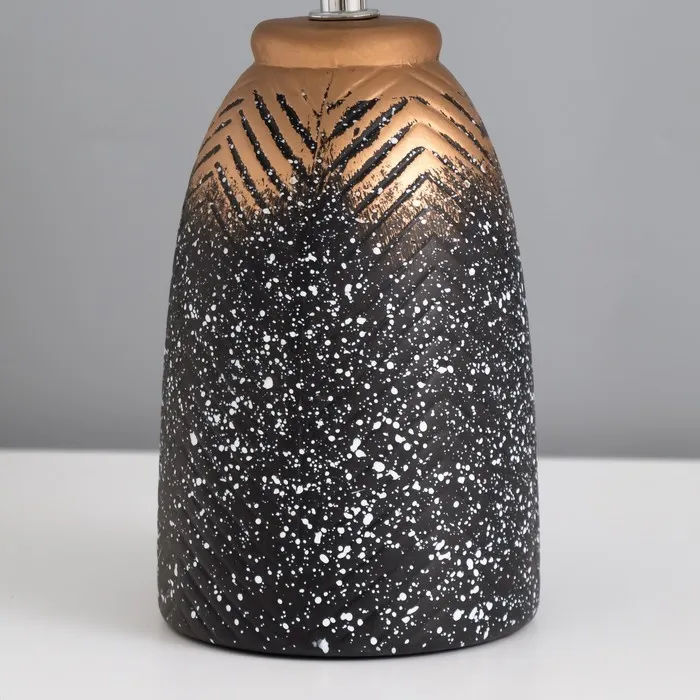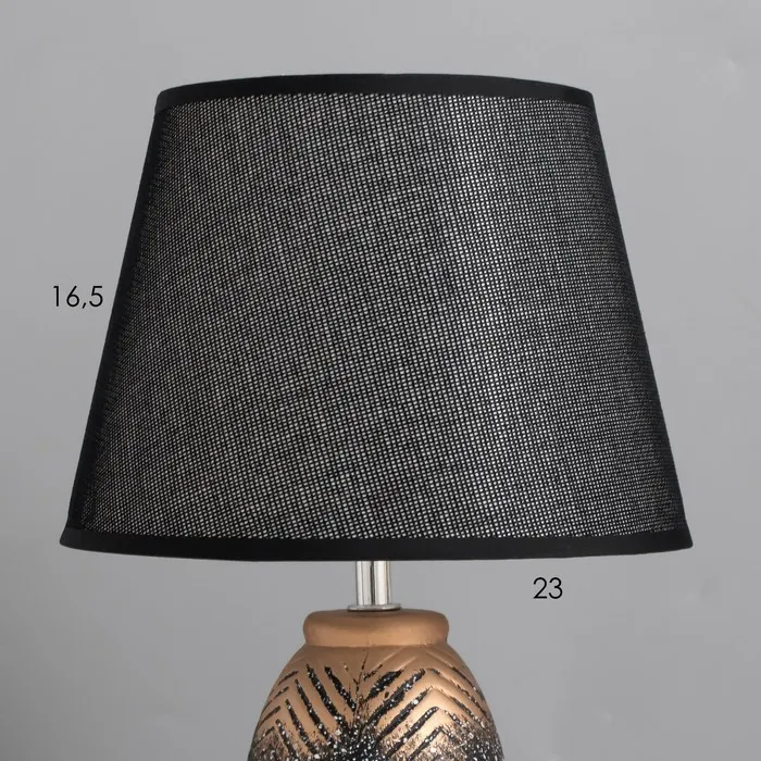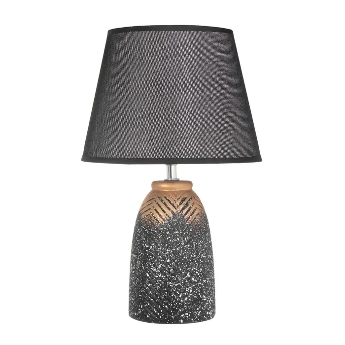 Эта настольная лампа станет стильным акцентом в вашем интерьере, сочетая элегантный дизайн и практичность. С черным текстильным абажуром и керамическим основанием в золотом цвете, она добавит нотки утонченности и современности в любое пространство.