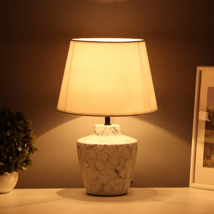 - Текстильный абажур создает мягкое и комфортное освещение, подходящее для чтения или отдыха.