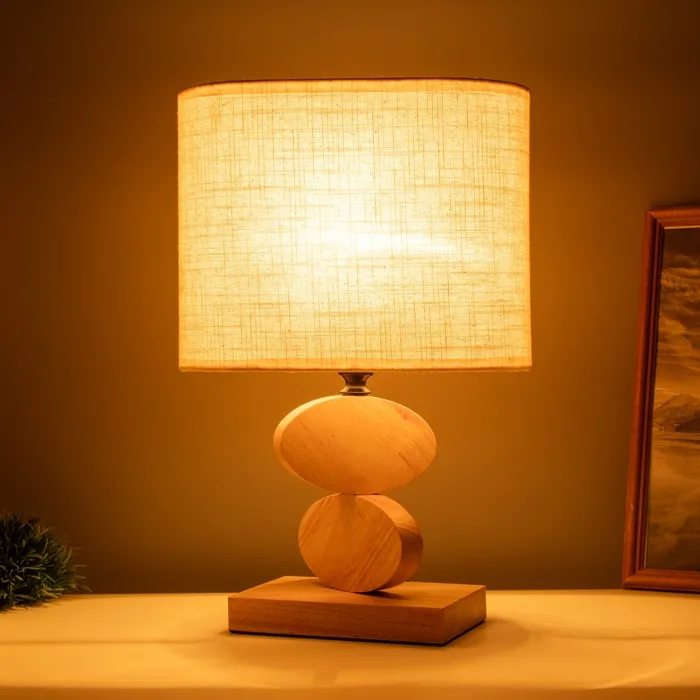 Эта настольная лампа станет великолепным дополнением вашего интерьера, сочетая стиль и практичность. С её светлым текстильным абажуром и основанием из дерева и металла в коричневых тонах, она создаст уютную атмосферу в любом помещении.