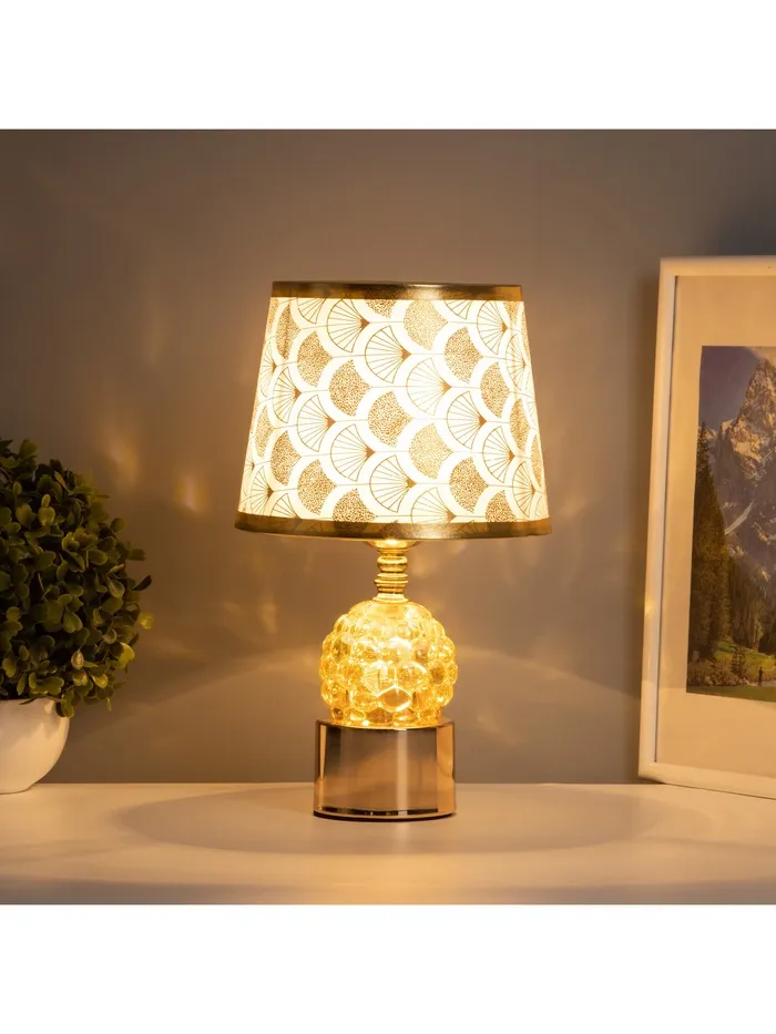Эта настольная лампа станет стильным и функциональным элементом вашего интерьера. С золотым металлическим основанием и элегантным абажуром, она добавит изысканности в любое пространство. Встроенная LED-подсветка основания создает мягкий свет, который идеально подходит для создания уютной атмосферы.