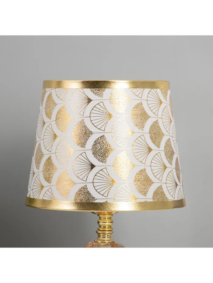 Эта лампа не только освещает, но и служит стильным акцентом в интерьере. Белые и золотые тона абажура придают ей современный вид, а трапециевидная форма добавляет оригинальности. Она идеально подходит для чтения, работы или создания романтической атмосферы во время вечера с друзьями или близкими.