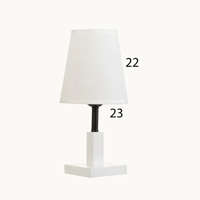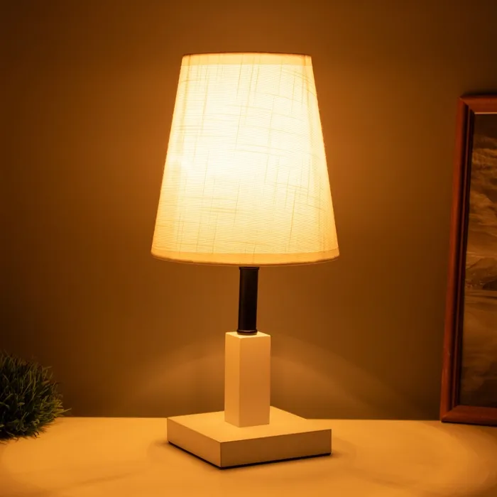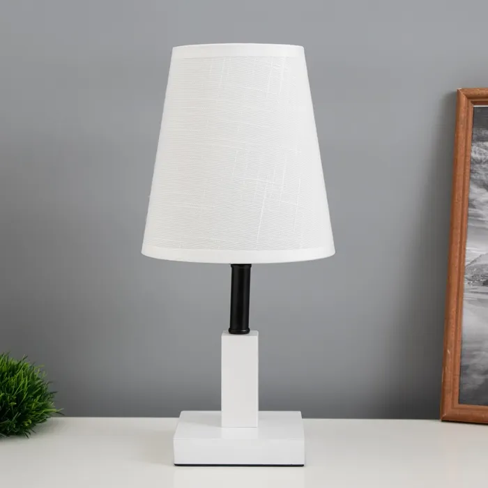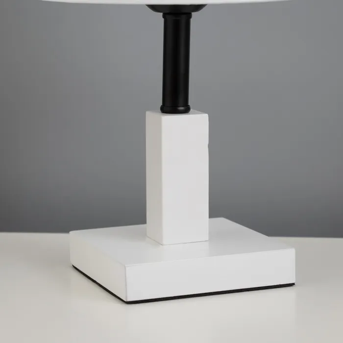 Эта настольная лампа станет стильным дополнением вашего интерьера. Сочетание белого и черного цветов в металлическом и деревянном основании придаёт ей элегантный вид. Компактные размеры позволяют разместить её даже в ограниченном пространстве, создавая при этом уютную атмосферу для работы или отдыха.