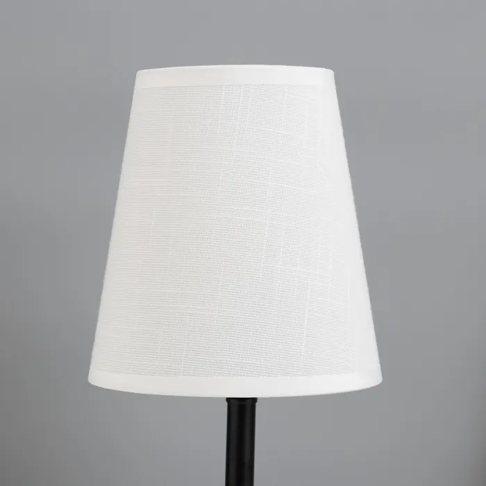 - Конусный текстильный абажур направляет свет вверх, создавая мягкое освещение.