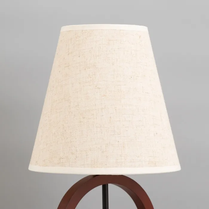 Эта настольная лампа станет стильным дополнением вашего интерьера. С сочетанием металлического и деревянного основания в коричневом цвете, а также бежевым текстильным абажуром, она создаст уютную атмосферу в любом помещении. Компактные размеры (11,5×11,5×27 см) делают её идеальной для размещения на столе или тумбочке.