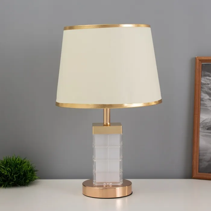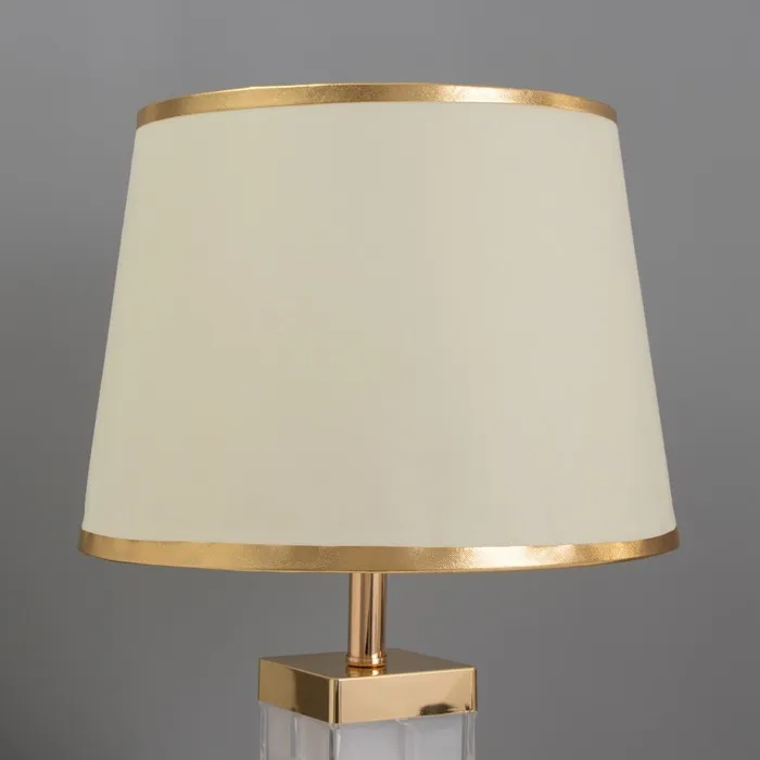 Эта настольная лампа станет стильным акцентом в вашем интерьере, добавляя элегантность и уют в любое пространство. С золотым основанием и бежевым текстильным абажуром, она создаёт атмосферу тепла и комфорта, идеально подходя для рабочего стола или прикроватной тумбочки.