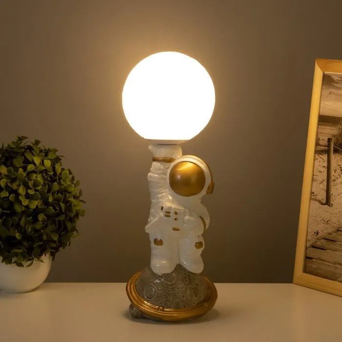 Лампа настольная «Космонавт с луной» 1×40 Вт Е14 белый/золото 12.5×12.5×33 см — Характеристики