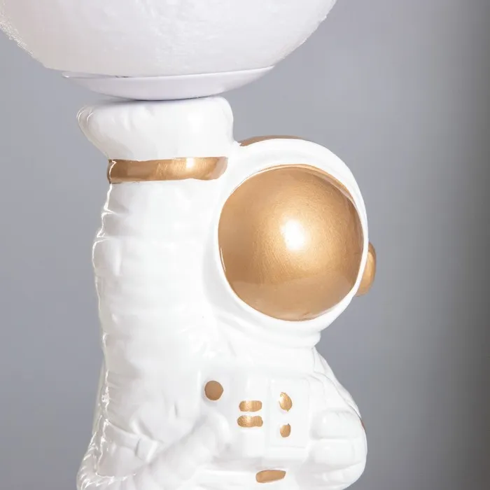 Эта настольная лампа в виде космонавта с луной станет не только источником света, но и ярким элементом декора вашего интерьера. Её уникальный дизайн привнесёт в пространство атмосферу космических приключений, что сделает её отличным выбором для детской комнаты или уютного уголка для чтения.