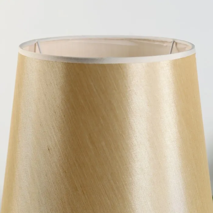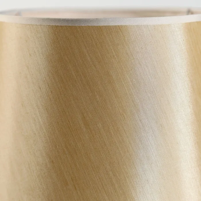 - Текстильный абажур с золотым оттенком создает мягкий свет и уютную атмосферу.