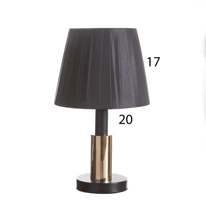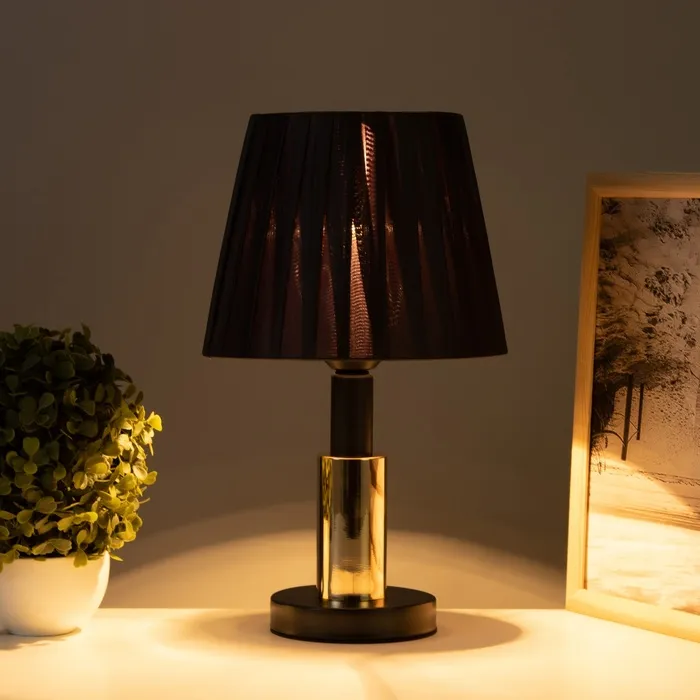 Настольная лампа с современным дизайном станет стильным акцентом в вашем интерьере. Сочетание черного и золотого цветов придаёт ей элегантный вид, а текстильный абажур обеспечивает мягкое и комфортное освещение. Эта лампа идеально подходит для создания уютной атмосферы в любом помещении.