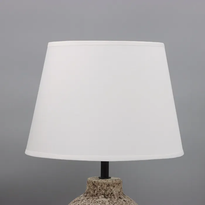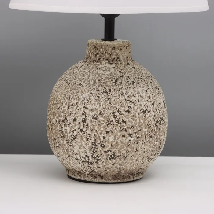 Настольная лампа с абажуром в бежевом и белом цветах станет стильным дополнением вашего интерьера. Керамическое основание и текстильный плафон создают атмосферу уюта и гармонии, а мягкий свет наполняет пространство теплом.