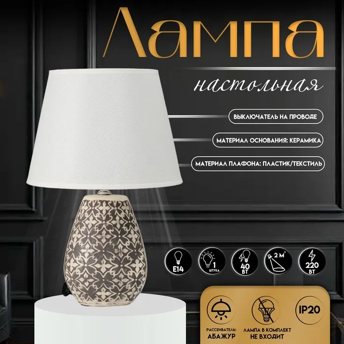 - Удобное управление: Выключатель на проводе позволяет включать свет без лишних движений. Питание от сети 220 В делает лампу готовой к работе сразу после установки лампочки.