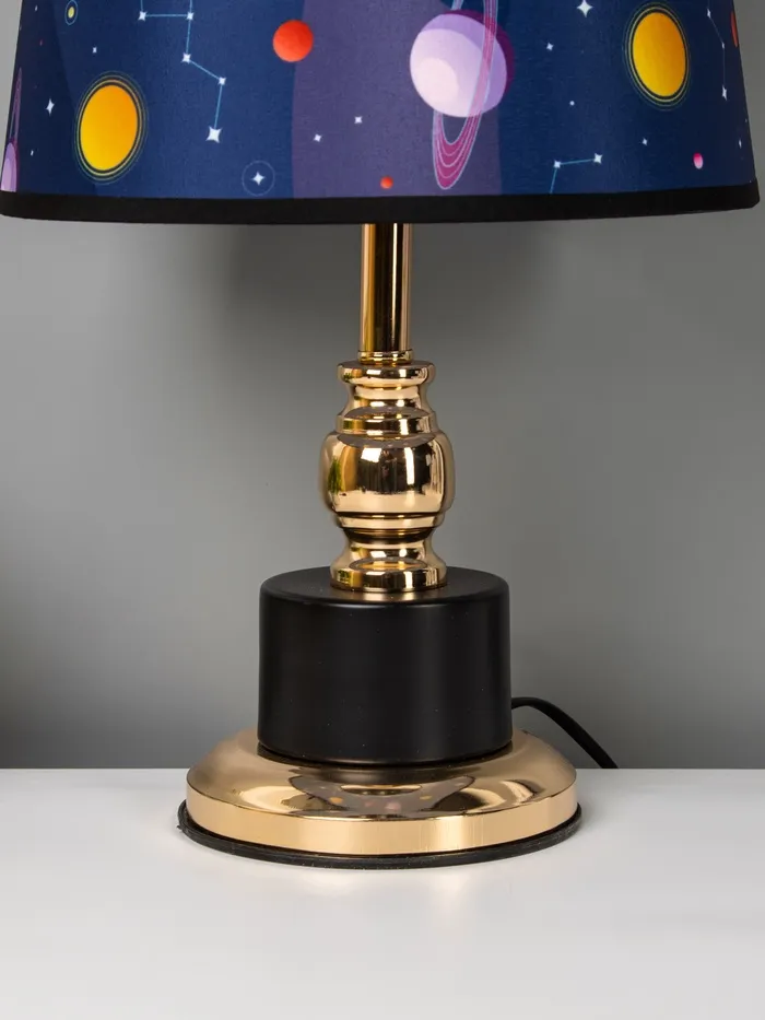 Крупные габариты, сбалансированная форма: Высота 41 см и ширина 24 см делают светильник заметным элементом на столе, тумбе или полке. Фигурное основание добавляет индивидуальности, не нарушая лаконичности дизайна. Синий абажур в тёмных тонах дополняет чёрную базу, не перегружая пространство. Это не просто источник света – это деталь интерьера, которая работает как акцент. Подходит для спальни, кабинета или гостиной, где важны чёткие линии, качество материалов и умеренная выразительность.