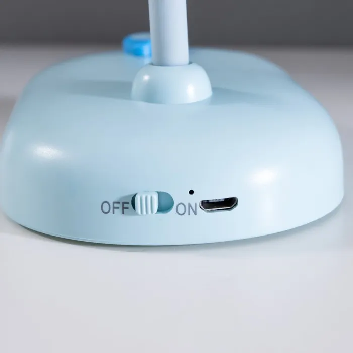 Настольная лампа «Мими» в голубом цвете станет отличным выбором для детской комнаты. Её стильный дизайн и компактные размеры идеально подойдут для рабочего стола школьника. Встроенные светодиоды создают мягкое и равномерное освещение, обеспечивая комфорт для глаз.