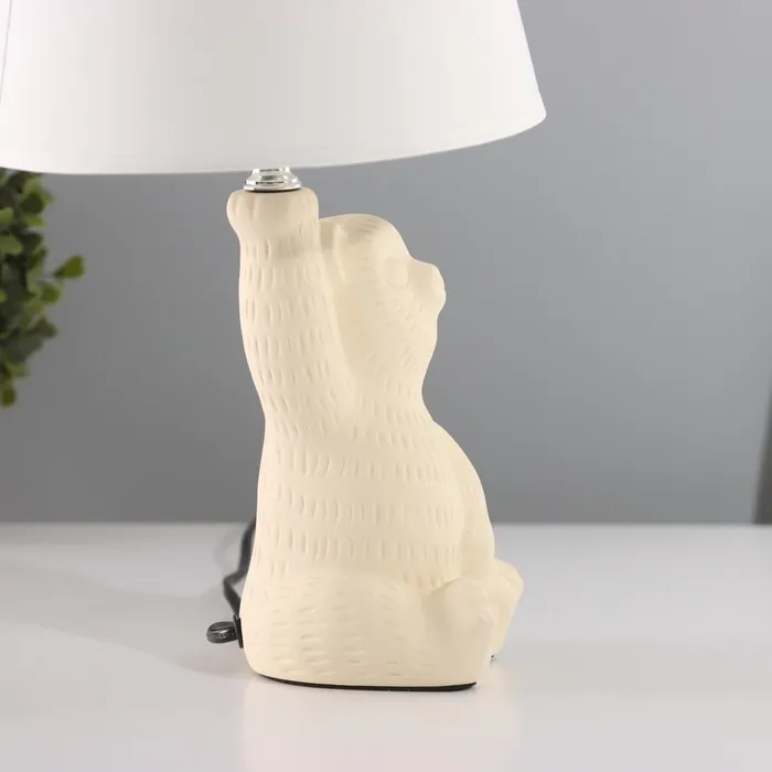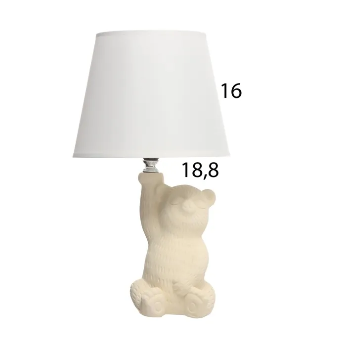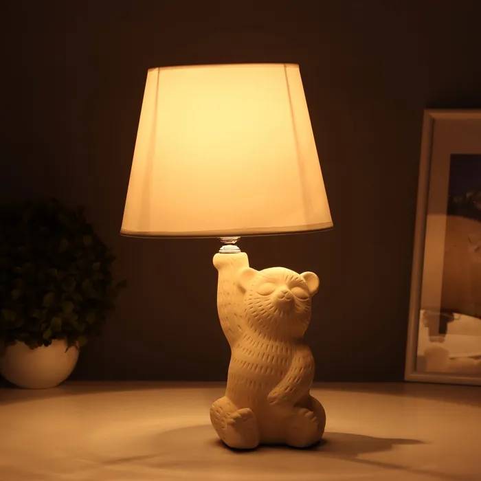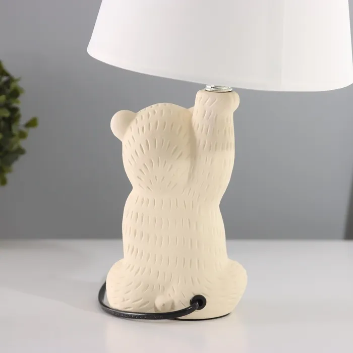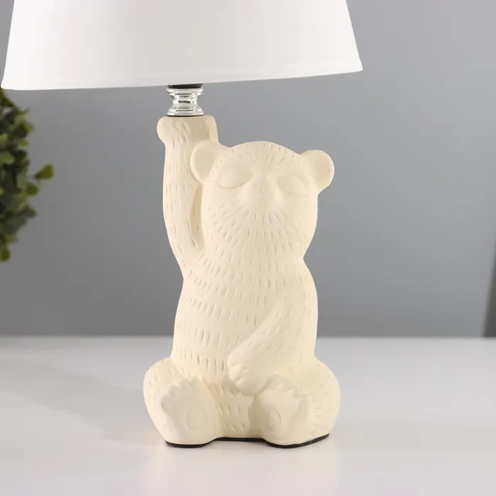 Очаровательная настольная лампа с фигуркой медведя станет оригинальным акцентом в вашем интерьере. Бежевое керамическое основание и белый текстильный абажур создают мягкое и приятное освещение, идеально подходящее для детской комнаты или уютной спальни.
