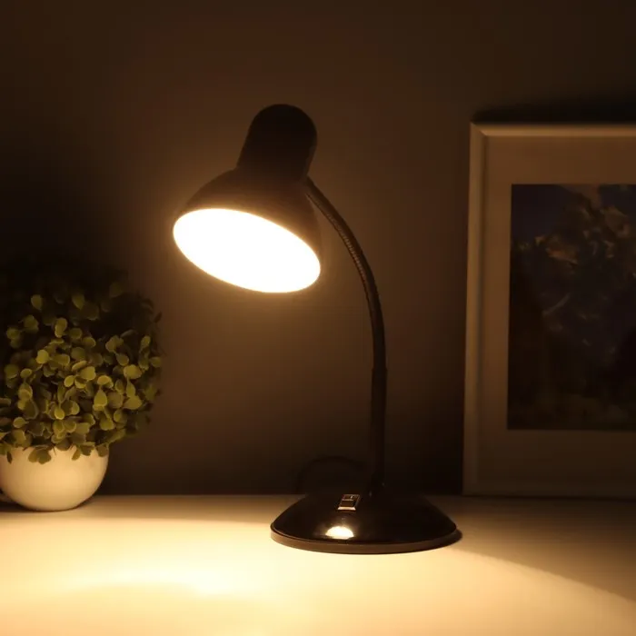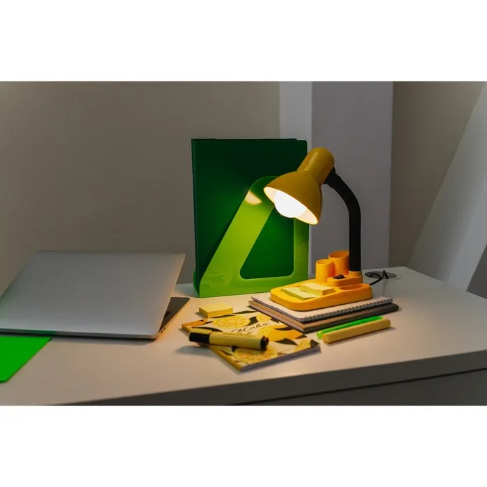 Настольная лампа «Мудрец» имеет удобный органайзер для канцтоваров. Гибкий стержень основания позволяет регулировать угол освещения.