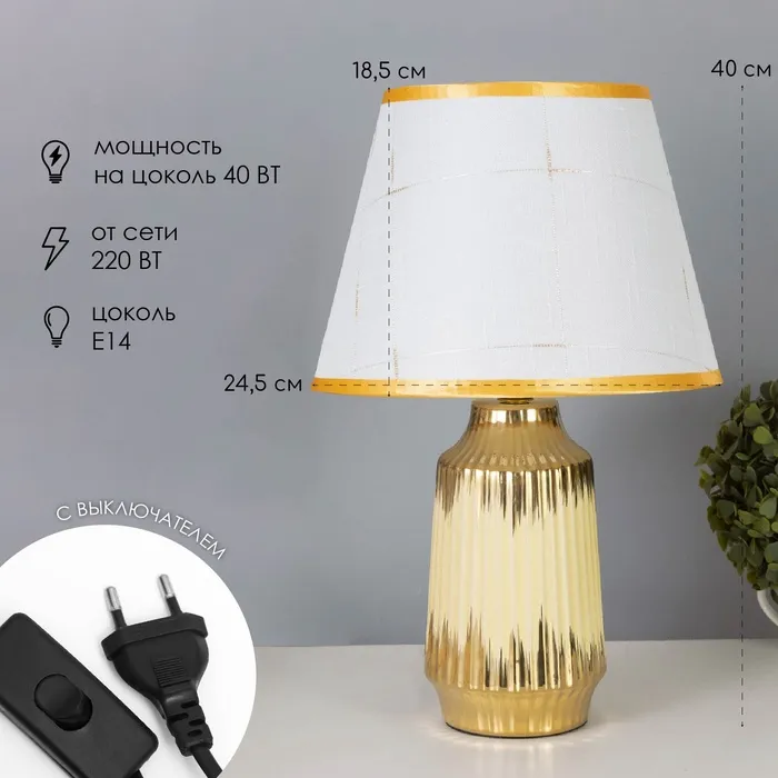 Лампа настольная «Нереа» 1×40 Вт Е14 бежевый/золото 24×24×40 см — Характеристики