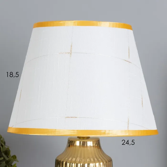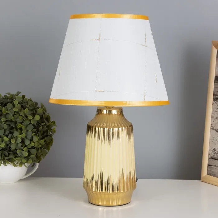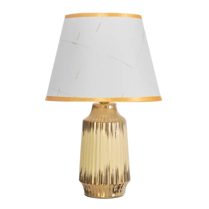 Элегантная настольная лампа с золотисто-жёлтой керамической основой и абажуром в светлых тонах станет стильным дополнением вашего интерьера. Она создаёт атмосферу тепла и уюта.