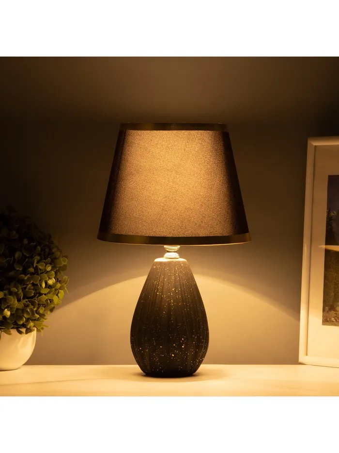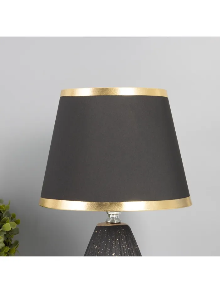 Элегантная настольная лампа с чёрной керамической основой и абажуром в чёрно-золотых тонах станет стильным акцентом в вашем интерьере. Она создаёт атмосферу уюта и изысканности.