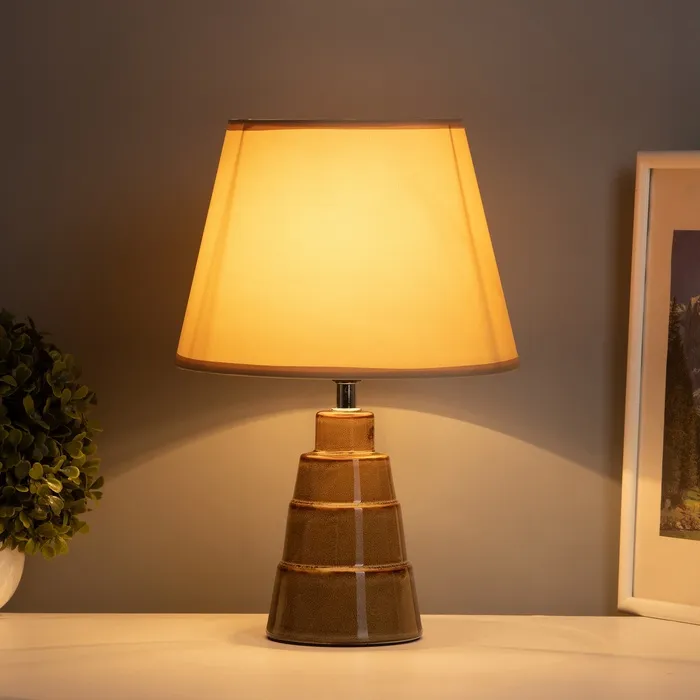 Настольная лампа с изящным дизайном станет отличным дополнением любого интерьера. Золотая керамическая основа, в сочетании с мягким текстильным абажуром, создаст уютную атмосферу в вашем доме. Эта модель идеально подходит для спальни, кабинета или гостиной, обеспечивая нужное освещение для чтения и отдыха.
