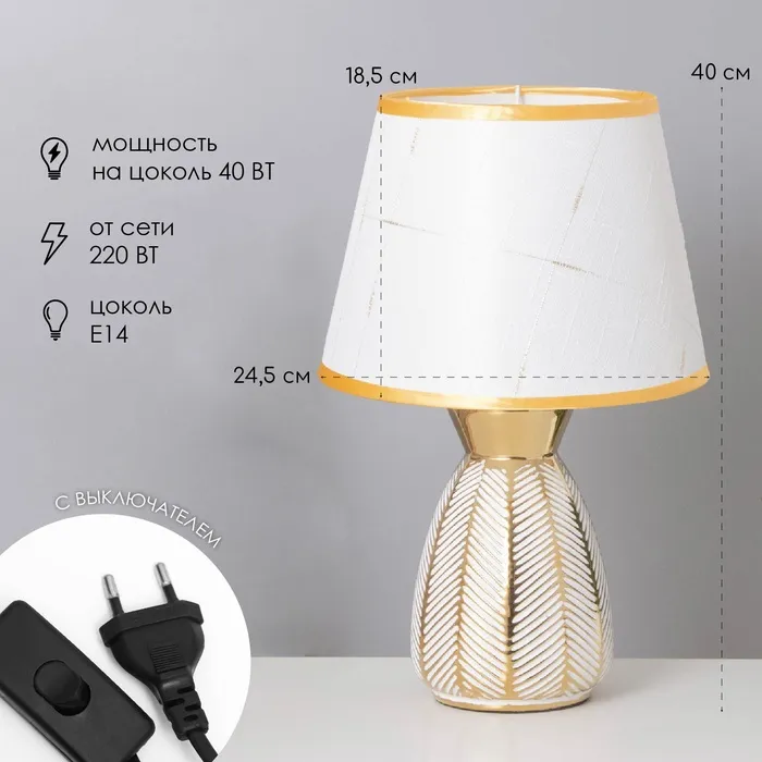 Лампа настольная «Паула» 1×40 Вт Е14 белый/золото 22×22×36 см — Характеристики