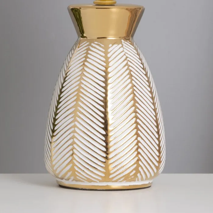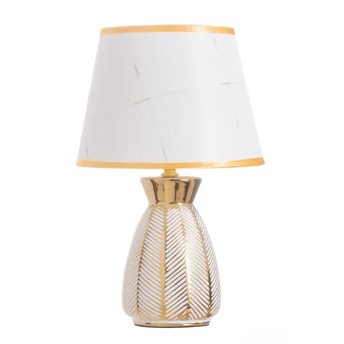 Элегантная настольная лампа с керамическим основанием в белом и золотом цветах станет стильным акцентом в вашем интерьере. Конусный абажур из светлых тонов создает атмосферу легкости и уюта, идеально подходящую для чтения или создания комфортной обстановки. Эта лампа добавит изысканности в любое помещение.
