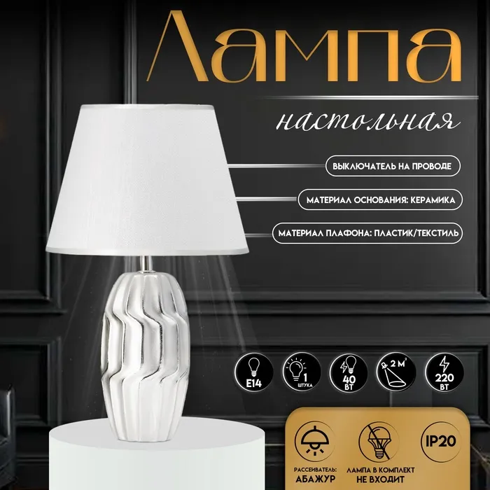 Свет, который держит форму — и задаёт тон. Настольная лампа с керамическим основанием под хром и белым текстильным абажуром-призмой — строгая, но тёплая модель высотой 43 см. Подходит для рабочего стола, прикроватной тумбы или зоны отдыха. Переносной светильник с классическим дизайном, который легко вписывается в современный интерьер.